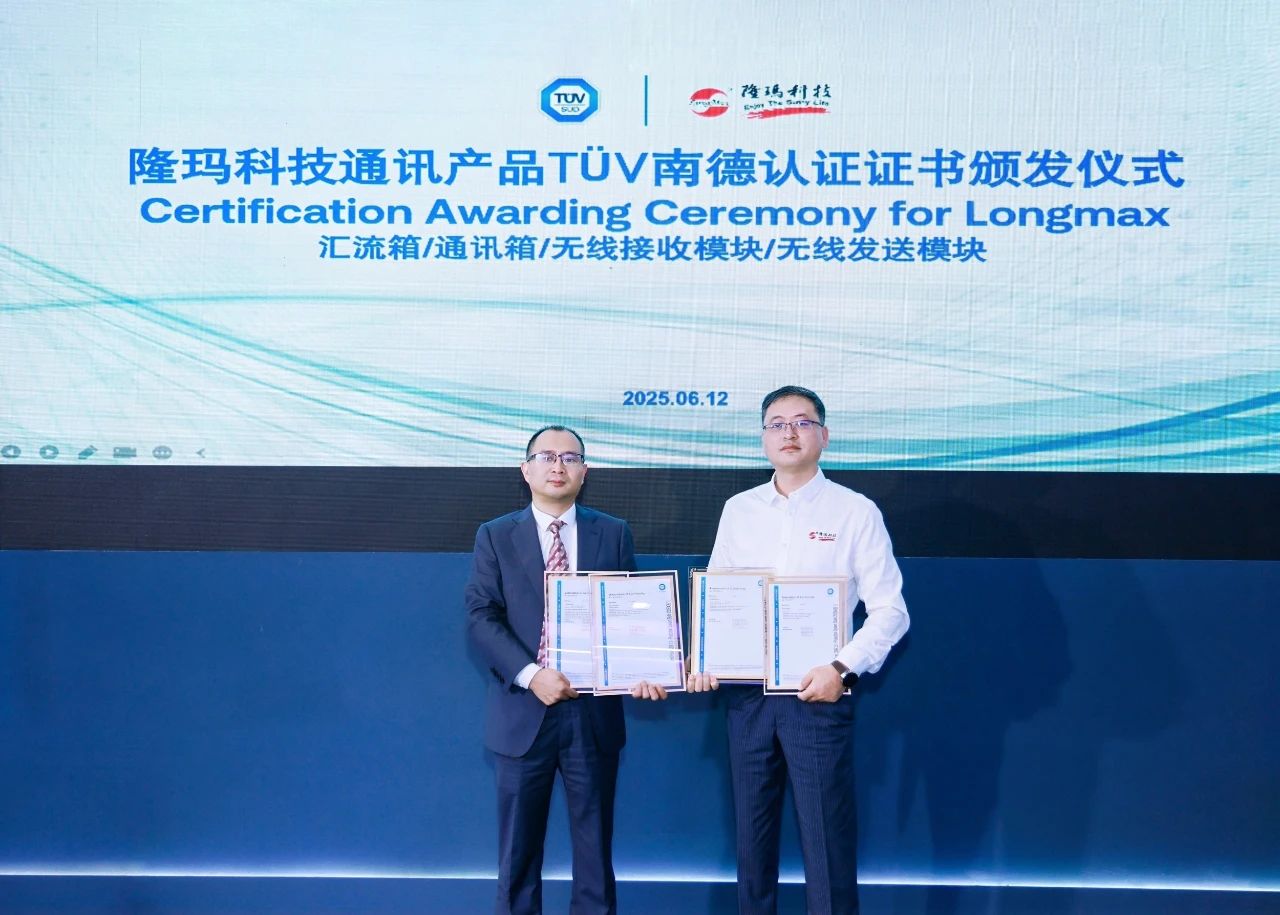 6月12日,2025 SNEC展会第二天,betway88西汉姆联迎来又一高光时刻,公司自主研发的LORA无线通讯系统中的汇流箱,通讯箱,无线发射模块以及无线接收模块得到国际权威机构——TÜV南德意志集团(以下简称“TÜV 南德”)正式颁发的认证证书,再次验证了betway88西汉姆联智能汇流箱系列产品在无线通信技术方面的极致可靠性与领先性,全面符合国际市场准入标准。